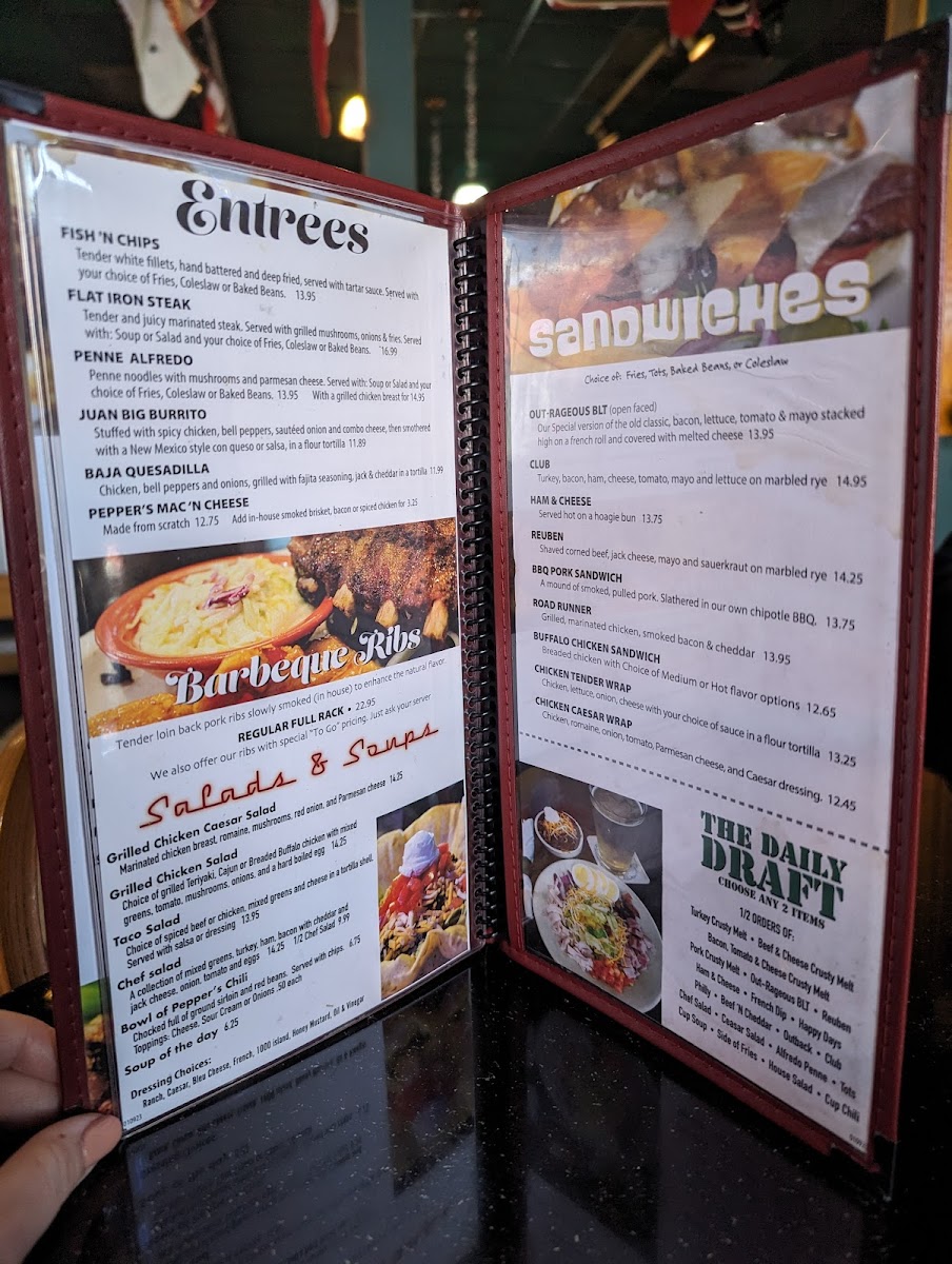 Whether it’s a midday lunch break, an evening with friends, or just a simple stop for a bite and a drink, Pepper's menu provides classic and approachable options designed to satisfy without fuss.