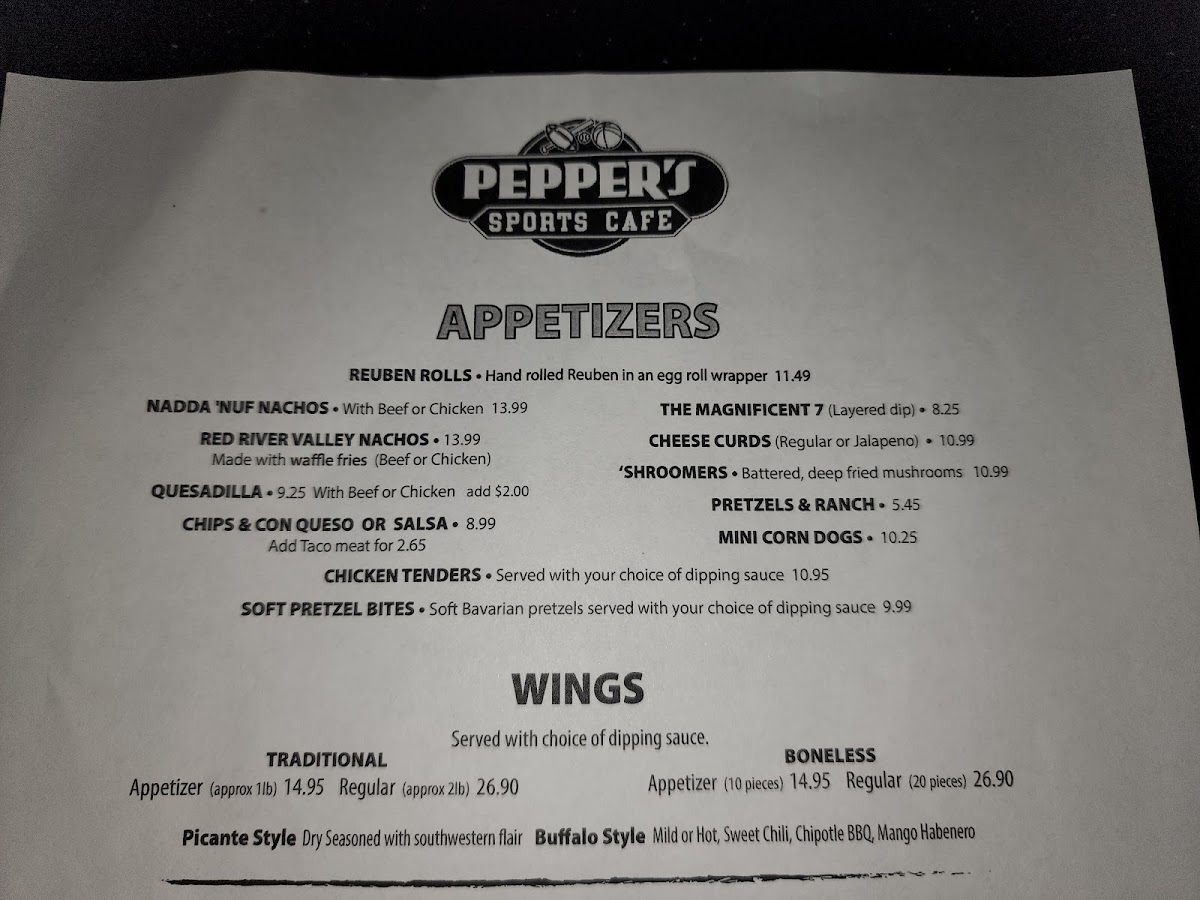 Pepper's Sports Cafe offers a straightforward menu that fits perfectly with its relaxed sports bar vibe. The food is centered around casual bites and comforting, familiar flavors that pair well with a cold beer or a game on TV. Whether you're settling in for lunch, dinner, or just stopping by for a quick snack and drink, the menu focuses on satisfying, easy-to-enjoy dishes.
